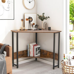 Triangle Computer Corner Desk with Charging Station-Rustic Brown – Color: Rustic Brown