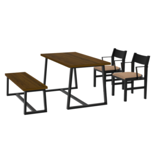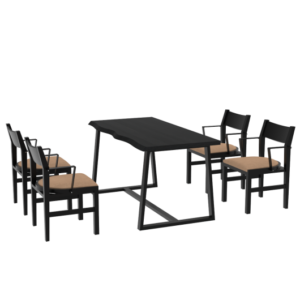 5 Pieces Wood Metal Dining Table Set with 4 Chairs-Natural – Color: Natural
