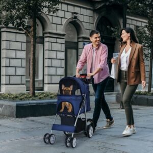 4-in-1 Double Pet Stroller with Detachable Carrier and Travel Carriage-Black – Color: Black