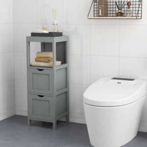 Freestanding Storage Cabinet with 2 Removable Drawers for Bathroom-Gray – Color: Gray