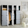 Specifications: Color: Black White Material: PP Steel Overall Dimension: 57.5″ x 18.5″ x 57.5″ (L x W x H) Size of White Panel: 14″ x 14″ (L x W) Size of Larger Black Panel: 18″ x 14″ (L x W) Size of Smaller Black Panel: 14″ x 14″ (L x W) Load Capacity of Each Cube: 11 lbs Load Capacity of Each Hanger: 11 lbs Net Weight: 26.5 lbs