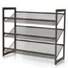 Specifications: Color: Brown Material: Steel 2-Tier Product imension: 29″ x 12″ x 17″ (L x W x H) 3-Tier Product dimension: 29″ x 12″ x 25″ (L x W x H) 4-Tier Product dimension: 29″ x 12″ x 32.5″ (L x W x H) Shelf dimension: 28″ x 11″ (L x W) Maximum weight of each shelf: 11 lbs Net weight: 13.5 lbs Package Includes: 1 x Shoe rack 1 x Instruction