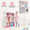 Comes with cute furniture and kitchen accessories this toy house set is an ideal present for children. With realistic lights from the stoves and click sounds from the rotatable stove switches the kitchen side gives your kids cooking fun. In the meantime multiple living spaces of the dollhouse side also exercise the spatial imagination. Also the dollhouse and play kitchen set has been certified by ASTM so that this non-toxic and odourless set is safe for children. With the help of clear instructions parents can easily put the panels together. It is simple to clean and maintain this playhouse set.
