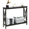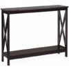2-Tier Console X-Design Sofa Side Accent Table-Espresso – Color: Dark Brown