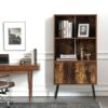 Adding a touch of rustic and vintage flavor into your home with this bookshelf! On the open shelf you can hold and display items for easy access. In the closet you can put some private sundries in. This bookcase can give you years of the company due to its sturdy frame and solid wood legs. The surface has been treated with sealing technology which makes it smooth and wear-resistant. With industrial and concise design the cabinet is perfect for decorating your living room study and office. It is ideal for a small house as it can be placed in the corner with a small space occupation to help you to keep your room tidy and clean. And it is easy to install the bookcase according to instructions.