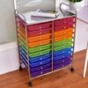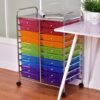 Specifications: Color of frame: White Color of drawer: Multicolor/Transparent/black/Yellow/Transparent multicolor Material: Steel + plastic Overall size: 25″x15″x 34″ (L x W x H) Inner size of drawer: 13″x 10″ x 2.5″ (L x W x H) Diameter of wheel: 1.5″ Weight of cart: 18.5 lbs Package include: 1 x 20-drawer rolling cart 1 x Instruction