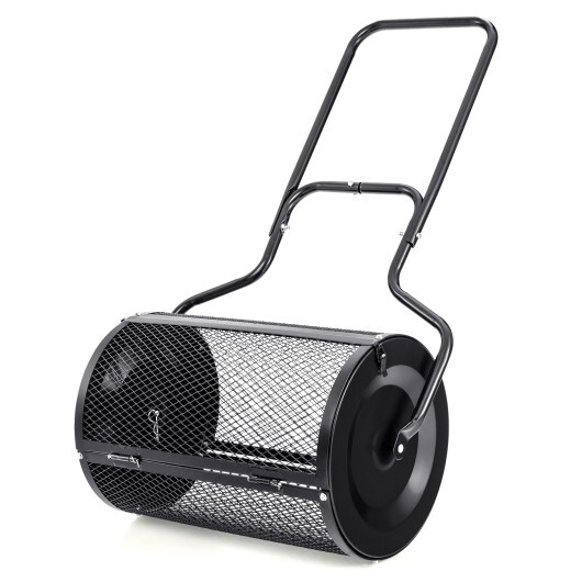 24″ Peat Moss Spreader with Upgrade Side Latches and U-shape Handle-Black – Color: Black