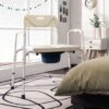 -Adjustable commode chair with height range between 19.5″ and 23.5″