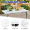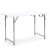 Specifications: Color: White Material: Steel HDPE Overall dimension: 47.5″ x 23.5″ x 19″/24.5″/29.5″ (L x W x H) Folding size: 23.5″ x 23.5″ x 3″ (L x W x H) 3-Level height: 19″/24.5″/29.5″ Net weight: 15.5 lbs Weight capacity: 330 lbs Package includes: 1 x Folding table 1 x Instruction