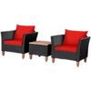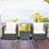 3 Pieces Patio Wicker Conversation Set? with Cushion-White – Color: White