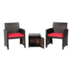 Specifications: Color of PE rattan Mix Brown Color of cushion Off White/Gray/Turquoise/Red Material PE Rattan steel polyester sponge tempered glass polyester PU painting Overall dimension of each sofa 24.5″x 23.5″x 30.5″ (L x W x H) Seat height from the ground 14.5″ Dimension of each cushion 19″x 20″x 2″ (L x W x Thickness) Overall dimension of table 16″x 16″x 16″ (L x W x H) Dimension of inner storage space 14.5″x 14″x 14″ (L x W x H) Net weight of each sofa 13 lbs Net weight of table 11 lbs Weight capacity of each sofa 350 lb Weight capacity of table 66 lbs