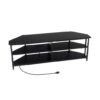 Specifications: Color Rustic Brown/ Black/ White Material Metal Engineered Wood Overall Dimensions 55″ x 15.5″ x 19″ Length of Tabletop’s Each Side 36.5″ Size of Each Compartment 25.5″ x 13″ Spacing Between Shelves 7″ Height off the Ground 2.5″ Load Capacity of Tabletop 165 lbs Load Capacity of Each Compartment 44 lbs Maximum TV Size Compatible 65″ Length of Power Cord 4.8 ft Net Weight 40 lbs