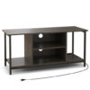 Specifications: Color: Gray Material: Engineered Wood Metal Overall Dimensions: 41.5″ x 16″ x 20″(L x W x H) Dimensions of Side Compartment: 10″ x 14″ x 15.5″(W x D x H) Dimensions of Middle Shelf: 17.5″ x 13.5″ x 7″(L x W x H) Dimensions of Bottom Shelf: 17.5″ x 13.5″ x 7.5″(L x W x H) Clearance Between Adjustable Levels: 1.4″ Clearance Between Floor: 2.5″ Power Cord Length: 5 ft USB-A+USB-C: 5V AC Outlet: 125V/12A Weight Capacity of Tabletop: 165 lbs Weight Capacity of Each Shelf: 45 lbs Net Weight: 35.5 lbs