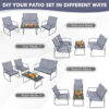 Specifications: Color: Grey and Black Material: Steel fabric Overall dimension of coffee table: 38″ x 19″ x 17″ (L x W x H) Overall dimension of each chair: 27.5″ x 21.5″ x 33.5″ (L x W x H) Overall dimension of loveseat: 29″ x 41.5″ x 33.5″ (L x W x H) Seat height from the ground: 15″ Total net weight: 64 lbs Weight capacity of coffee table: 200 lbs Weight capacity of each chair: 330 lbs Weight capacity of loveseat: 660 lbs Package includes: 1 x Coffee table 1 x Loveseat 2 x Chairs 1 x Instruction