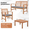 Specifications: Color of Frame Natural Color of Cushion Gray/Navy/White Material Acacia Wood Sponge Polyester Dimension of Loveseat 23.5″ x 48″ x 31.5″ Dimension of Each Chair 23.5″ x 24″ x 31.5″ Dimension of Coffee Table 29.5″ x 20″ x 14″ Seat Height 13.5″ Seat Depth 18″ Dimension of Loveseat Cushion 43″ x 18″ x 2″ Dimension of Each Cushion 20″ x 18″ x 2″ Weight Capacity of Loveseat 800 lbs Weight Capacity of Each Chair 400 lbs Weight Capacity of Coffee Table 180 lbs Total Net Weight 62 lbs