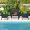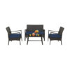 Specifications: Color of PE Rattan Mix Brown(Navy)/Black(Turquoise) Color of Cushion Navy/Turquoise Material Metal Tempered Glass Polyester Non-woven Fabric Sponge Dimension of Loveseat 42″ x 26.5″ x 31″ Dimension of Single Chair 22.5″x 26.5″ x 31″ Dimension of Coffee Table 31.5″ x 16″ x 16″ Seat Height 14″ Dimension of Seat Cushion 19.5″ x 19.5″ x 2″ Net Weight of Loveseat 17.5 lbs Net Weight of Each Single Chair 13 lbs Net Weight of Coffee Table 11 lbs Total Net Weight 54.5 lbs Weight Capacity of Loveseat 800 lbs Weight Capacity of Each Single Chair 400 lbs Weight Capacity of Coffee Table 100 lbs