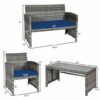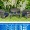 Specifications: Color: Red/Turquoise/White/Black/Navy Material: PE Rattan Polyester Fiber Steel Sponge Single Sofa Dimension: 23.5″ x 25″ x 31″ (L x W x H) Loveseat Dimension: 43.5″ x 25″x 31″ (L x W x H) Coffee Table Dimension: 35″ x 18″ x 17.5″ (L x W x H) Net Weight: 70 lbs Loveseat Capacity: 792 lbs Single Chair Capacity: 400 lbs Coffee Table Capacity: 165 lbs