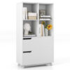 Specifications: Color: White Material: Engineered Wood Overall Dimensions: 28″ x 14″ x 51″ (L x W x H) Interior Dimensions of Drawer: 25″ x 9.5″ x 5″ (L x W x H) Net Weight: 72 lbs Weight Capacity of Top: 88 lbs Weight Capacity of Each Cube: 22 lbs Weight Capacity of Each Drawer: 11 lbs Package Includes: 1 x Bookcase 1 x User Guide