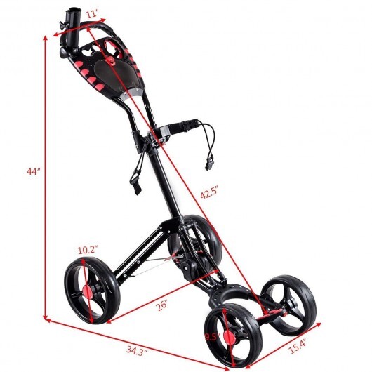 This is the 4 wheel golf push cart whch can be folded to compact size for easy storage before or after your round of golf.