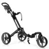 The 10.5″ rear and 9.5″ front wheels make it roll easily in the high grass. Golfers can push the cart effortlessly on all terrain with the stable 4 wheel design multiple handle positions and smooth-rolling ball-bearing wheels. The cart is equipped with features that most golfers want including umbrella holder scorecard holder with storage compartment and beverage holder on the handle.
