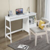 This modern desk is simple and fashionable. With the footrest at the bottom you will feel more comfortable when sitting on it. Equipped with two drawers and a shelf it provides amplespace for you to store necessary supplies. As the material is P2 MDF there is no need to worry about the health of your family. The superior material also ensures it’s the desk’s durability and stability.