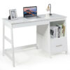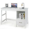 Specifications: Color: White/Black Product size: 47.5″ x 20″ x 30.5″ (L x W x H) Desktop load capacity: 150 lbs Drawer load capacity: 20 lbs Shelf load capacity: 30 lbs Material: P2 MDF Net weight: 55.5 lbs Package includes: 1 x Computer desk 1 x User guide