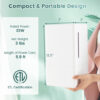 Specifications: Color WhiteMaterial ABSProduct Dimension 7″ x 7″ x 12.5″ Net Weight 3 lbs Rated Power 22WVoltage 120VRated Frequency 50/60HzRated Humidification 280ml/hWater Tank Capacity 4 L/1 GallonAdjustable Humidity Range 40% – 70%Length of Power Cord 5.9 ftCoverage 23?/ 250 sq.ftRuntime 24H (low mist level)Timer 0-12 HoursNoise Level ?38 dB