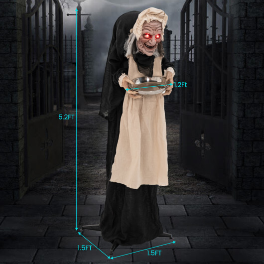 - -Ominous red eyes and posable arms make the decoration more realistic