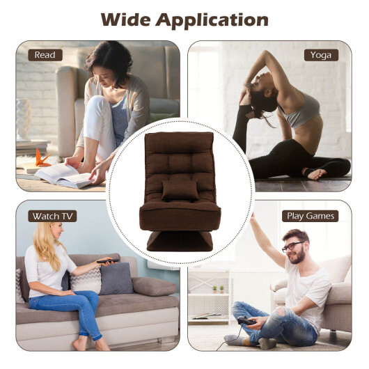 5-Level Adjustable 360?° Swivel Floor Chair with Massage Pillow-Brown – Color: Brown