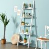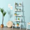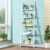 Made of solid density board this shelf is sturdy and durable enough for long-lasting use. 5-tier open shelves can well suit your daily needs for storing and displaying books photos ornaments etc. Featuring a unique and space-saving wall-leaning design the ladder shelf can not only make full use of vertical space but also keep your room clean and tidy. Besides the simple and modern style makes this bookshelf suitable for the living room bathroom and study. It can be used not only as a bookcase but also as a display rack and storage shelf.