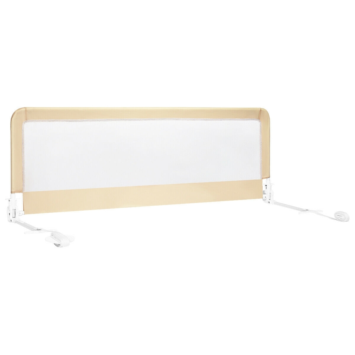 59 Inch Folding Breathable Baby Bed Rail Guard with Safety Strap-Beige – Color: Beige