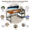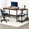 Specifications: Color Black Rustic Brown Material Engineered Wood Metal Overall Dimensions 59″ x 24″ x 30″ (L x W x H) Dimension of Under-desk Storage Shelf 21.5″ x 12″ (L x W) Height of Under-desk Storage Shelf 13″ 11.5″ Clearance from Shelf to Ground 3″ Dimension of Legroom 41″ x 27.5″ (L x H) Weight Capacity of Tabletop (Left) 210 lbs Weight Capacity of Tabletop (Right) 65 lbs Weight Capacity of Each Shelf 55 lbs Outlets 125V / 12A USB Ports 5V / Max 2.1A Power Cord Length 6.5 ft Net Weight 40 lbs