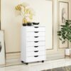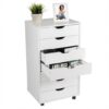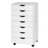 7-Drawer Chest Storage Dresser Floor Cabinet Organizer with Wheels-White – Color: White