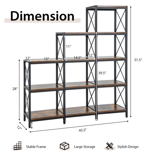 Specifications: Color Rustic Brown Material Carbon Steel Engineered Wood Overall Dimension 45.5″ x 12″ x 51.5″ Size of Each Cube 14.5″ x 12″ x 11″ Size of Metal Tube 0.8″ x 0.8″ Load Capacity of Each Shelf 44 lbs Net Weight 61.5 lbs