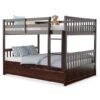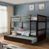 Specifications: Color: White/Brown Material: Pine wood + MDF + plywood Overall dimension: 79.5″ x 57″ x 60″ (L x W x H) Trundle dimension: 75.5″ x 40.5″ x 10.5″ (L x W x H) Weight capacity of upper bed: 360 lbs Weight capacity of lower bed: 360 lbs Weight capacity of trundle: 270lbs Suitable mattress size: Full (mattress not included) Height of guard rail: 14″ Net weight: 80 lbs Package includes: 1 x Bunk bed with trundle 1 x Instruction