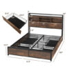 Specifications: Color Vintage Brown Material Metal MDF Overall Dimension 83″ x 55″ x 44″(Full) /88″ x 61.5″ x 44″(Queen) Dimension of Drawer 29.5″ x 19.5″ x 5.5″(Full) /29.5″ x 19.5″ x 5.5″(Queen) Height of Footboard 12.5″ Headboard Width 7″ Under-bed Space 8.5″ Outlet 125V/12A USB Port 5V/2A Power Cord Length 5 FT Recommended Mattress Full/Queen (not included) Recommended Mattress Thickness 8″-10″(not included) Net Weight 103.5 lbs(Full) /114.5 lbs(Queen) Weight Capacity of Bed Frame 400 lbs(Full) /485 lbs(Queen) Total Weight Capacity of Storage Headboard 140 lbs Weight Capacity of Each Drawer 22 lbs