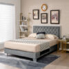 -Unique button tufted headboard highlights the bed frame
