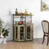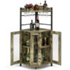 - -Top shelf with wine glass holders satisfies home bar storage needs