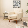 Modern Accent Chair Upholstered Linen Fabric Armchair with Removable Padded Seat Cushion-Beige – Color: Beige