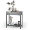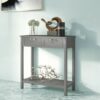 Narrow Console Table with Drawers and Open Storage Shelf-Gray – Color: Gray