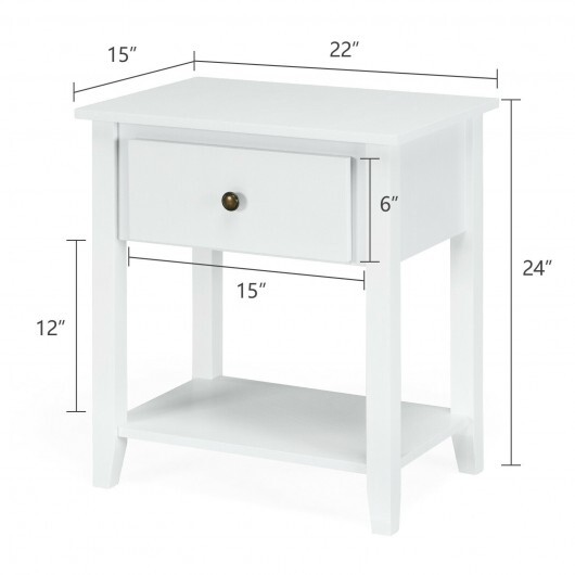 Specifications: Color: White/Black/Brown/Dark Brown Material: P2 MDF pine Product dimensions: 15″ x 22″ x 24″ (L x W x H) Drawer interior dimensions: 15″ x 15″ x 6″ (L x W x H) Weight: 25 lbs Weight capacity of shelf: 15 lbs Weight capacity of drawer: 15 lbs Weight capacity of tabletop: 110 lbs Package includes? 1 x Nightstand 1 x Instruction