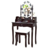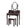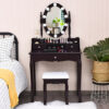 Specifications: Color: Brown / White / Black Material: MDF Pine Net Weight: 37 lbs Vanity Table Size: 29.5″ x 16″ x 56.5″ (L x W x H) Stool Size: 14.5″ x 11″ x 18″ (L x W x H) Big Drawer Size: 14.5″ x 10.5″ x 3.5″ (L x W x H) Big Drawer Interior size: 12.5″ x 10″ x 2.5″ (L x W x H) Small Drawer Size: 8″ x 3.5″ x 3.5″ (L x W x H) Small Drawer Interior size: 7″ x 3″ x 2″ (L x W x H) Mirror Size: 11″ x 16″ (L x W) Table Top to the Ground: 29.5″ Weight Capacity of Table: 287 lbs Weight Capacity of Stool: 250 lbs