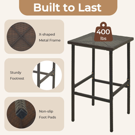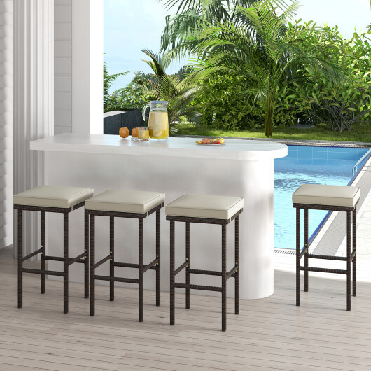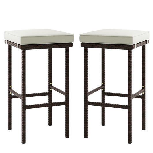 Patio Wicker Bar Stools Set of 2 with Seat Cushions and Footrest