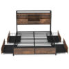 The padded headboard covered with skin-friendly fabric is comfortable to lean against while reading or watching TV in bed. The bed frame is made of heavy-duty steel sturdy MDF and plywood giving you a stable sleeping place for years to come. And there are adjustable foot pads to fit uneven floors and prevent scratches. Thanks to the reinforced wooden structure and mute bar the bed frame produces no crinkling noise. Featuring a 2-position adjustable headboard this platform bed frame is compatible with a mattress of 10″-13″ height. In addition the under-bed clearance provides you with extra storage space and allows robot vacuums to do the cleaning.