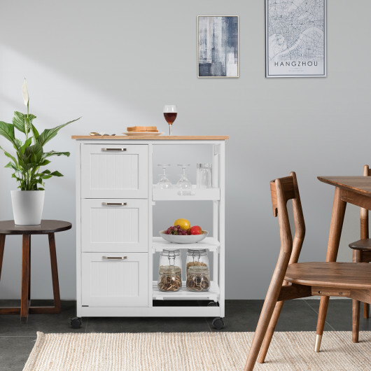 Rolling Kitchen Island Utility Storage Cart with 3 Large Drawers-White – Color: White