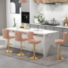 Specifications: Color Gray/Pink/Beige Material Dutch Velvet Sponge Metal Overall Dimension 18″ x 20″ x 38″-46″ Size of Backrest 17″ x 13.5″ Size of Seat 18″ x 16.5″ Thickness of Seat 4″ Height of Seat 26.5″-34.5″ Height of Footrest 9.5″-17.5″ Diameter of Base 16.5″ Suitable Table Height 35″-43″ Max Load Capacity 330 lbs Net Weight of Each Bar Chair 22 lbs
