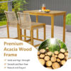 Specifications: Color of Rattan Light BrownColor of Frame TeakMaterial Acacia Wood PE rattan MetalOverall Dimension 23″ x 18.5″ x 42″Seat Height 30″Suitable Bar Table Height 39.5″-47″Weight Capacity of Each Bar Chair 400 lbsTotal Net Weight 30 lbs
