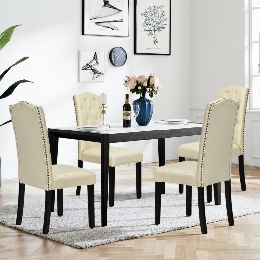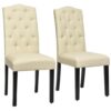 Set of 2 Tufted Upholstered Dining Chairs-Beige – Color: Beige