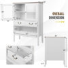 Specifications: Color White brown Material Pine Wood Metal MDF Overall Dimension 36″ x 16″ x 50″ Single Door Size 20″ x 16″ Depth of Interior Shelf 13.5″ Depth of Upper Cabinet 14″ Drawer Interior Size 14″ x 11″ x 4″ Drawer External Height 6″ Diameter of Each Wine Bottle Holder 3″ Open Wine Rack Size 32″ x 9.5″ Clearance from Ground 8.5″ Total Load Capacity 310 lbs Net Weight 82.5 lbs