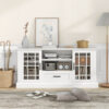 Specifications: Color BlackMaterial Engineered Wood MDF Overall Dimensions 63″ x 16″ x 30″Interior Dimensions of Open Shelf 24″ x 14″ x 16″ Interior Dimensions of Side Cabinet 17″ x 14″ x 24.5″ Interior Dimensions of Drawer 21.5″ x 11″ x 5.5″ Weight Limit of Tabletop 200 lbs Net Weight 107 lbs